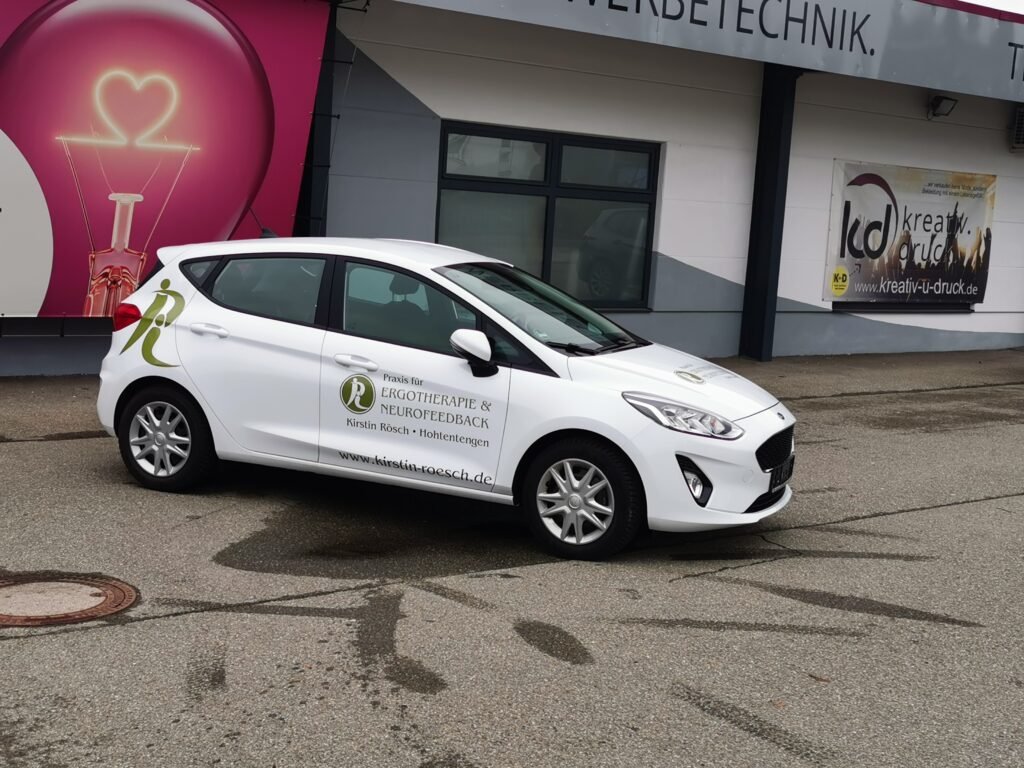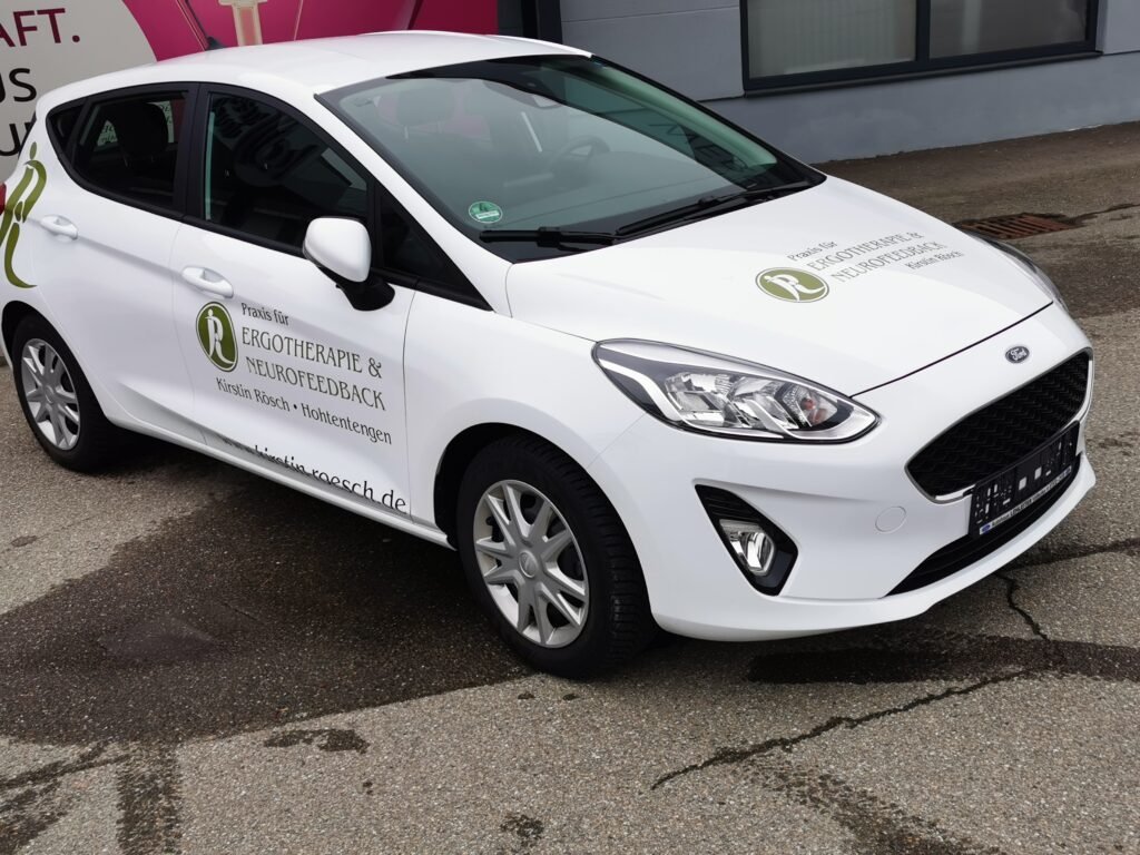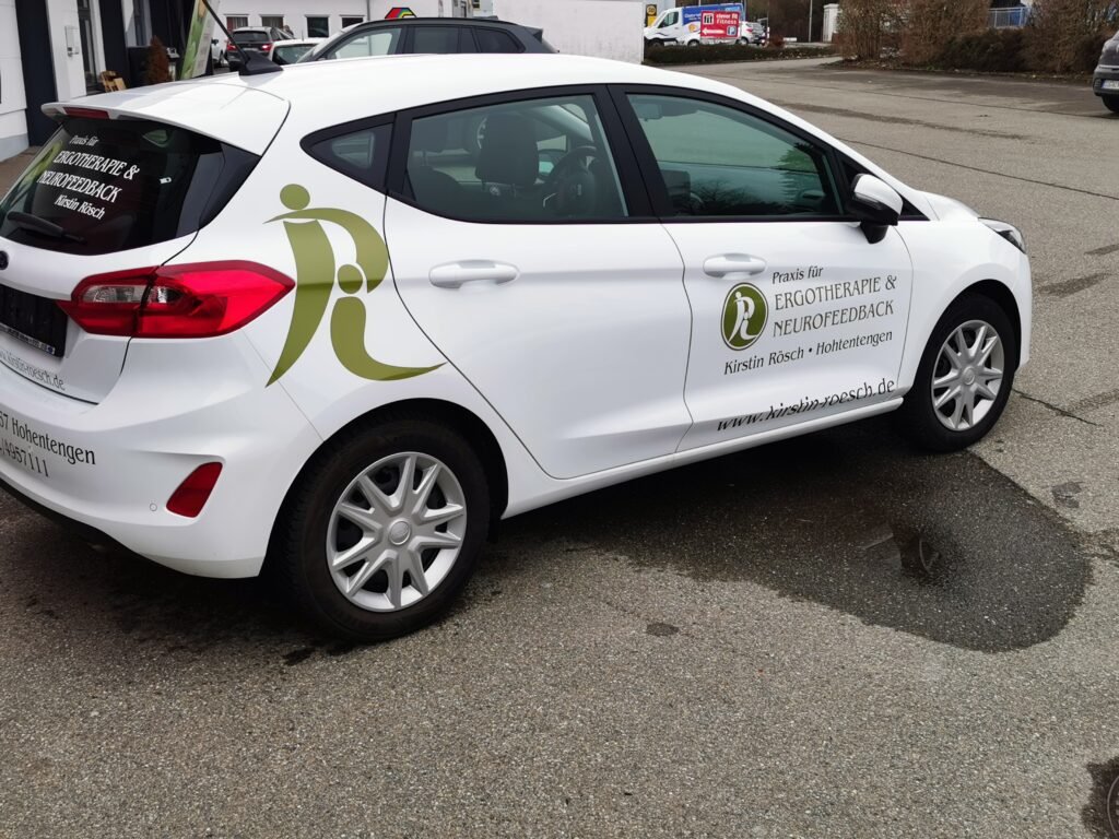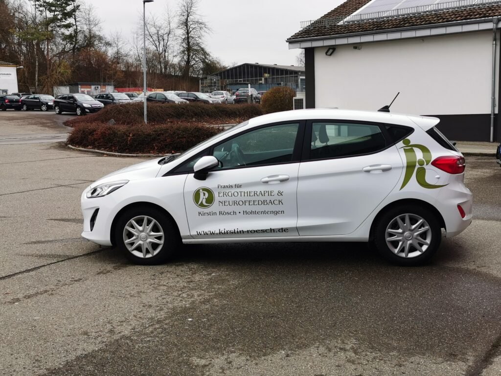 Für Kirstin Rösch – Ergotherapie haben wir den Ford Fiesta mit dem Praxislogo professionell beschriftet.