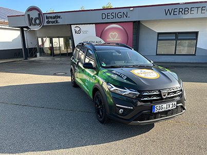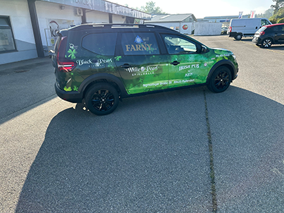 Für das Irish Pub by Ken in Pfullendorf haben wir den Firmenwagen, einen Dacia Jogger, in aufwendiger Digitaldruck-Vollfolierung realisiert.